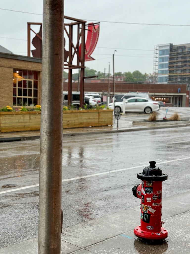 I stood outside smoking and taking in every iota of life I could see from the hotel entrance. There’s a few restaurants and shops in the immediate area as it sits at an intersection, so there was a lot to look at and enjoy. The light up signs took on a deep but vivid tone in the overcast despite the fact that they weren’t even turned on and it just sort of added to the mood of the day as it started.