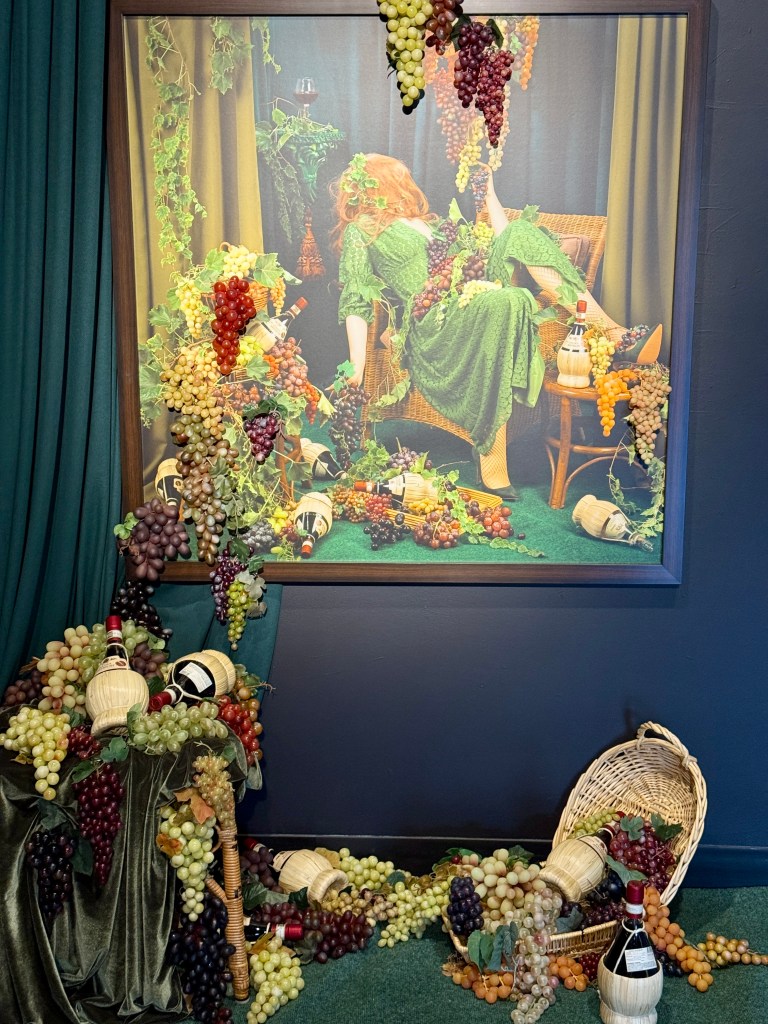 Each area of the hotel had it’s own enticing comfort threaded into it’s existence. The jewel tones were impossible to resist and perfectly balanced the brighter aspects of the hotel. Each turn throughout the building felt enchanting. It wasn’t until my last day in town that I was able to take a bit of time and look at the artwork downstairs. It was spread out a schosh in the common area where visitors could linger and I was delighted by the abundance of women featured in said artwork. Each painting had it’s own charm, although my favorite was the woman with the grapes. The third dimensional aspect is what kept me interested and present with this particular painting because I felt like I was there with her. Is she sad over a past lover? Did she lose all she holds dear? Is this a typical Wednesday for her? Who knows, but at least I got to experience the moment with her!